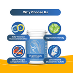 300mg of Fully Reacted Glucosamine Sulfate of non-shellfish origin helps to support joint health by providing essential building blocks for cartilage, reducing stiffness and discomfort associated with conditions like Osteoarthritis. The source of our Glucosamine Sulfate is from an innovative direct fermentation technology on non-GMO corns. These non shellfish alternatives offer options for individuals with shellfish allergies or dietary restrictions.