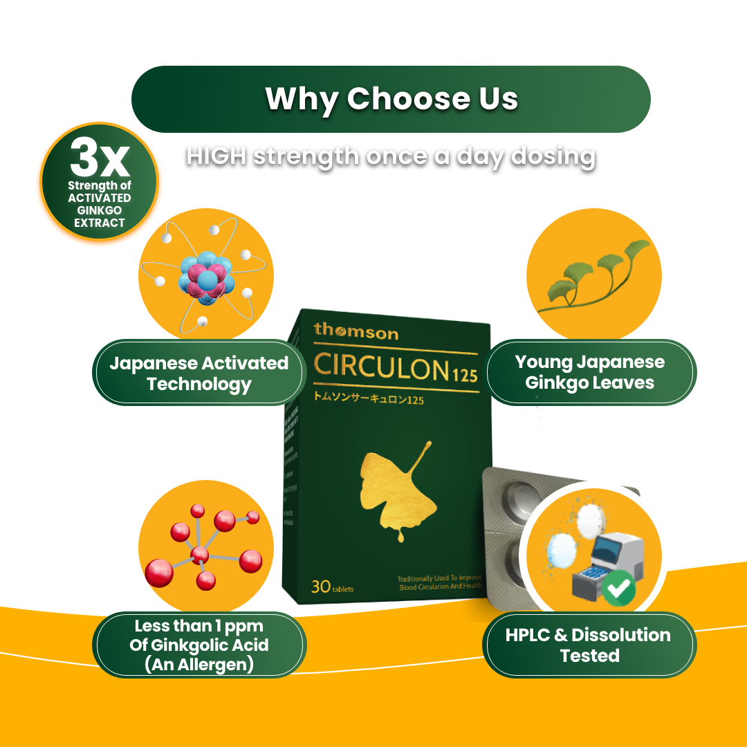 Each tablet contains 125mg of Ginkgo Biloba extract imported from Japan. It is also enhanced with Japanese Activated Technology for improved absorption. Thomson Activated Ginkgo has helped many users for over 30 years. Each tablet is manufactured under strict Good Manufacturing Practice (GMP) and in-house quality control.